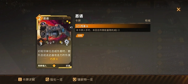 8、镶嵌物:卡牌强化至两级会自动具备镶嵌功能。每次获取卡牌时,也有一定概率得到本身就带有镶嵌物的卡牌。商店中设有专门为卡牌镶嵌镶嵌物的区域。若想了解具体效果,点击镶嵌物一览即可知晓。
