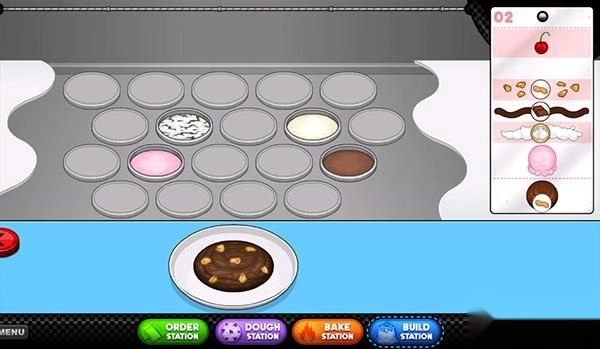 4、根据右侧的菜单选择先制作饼干,选择好饼干后,并为饼干加上小料。