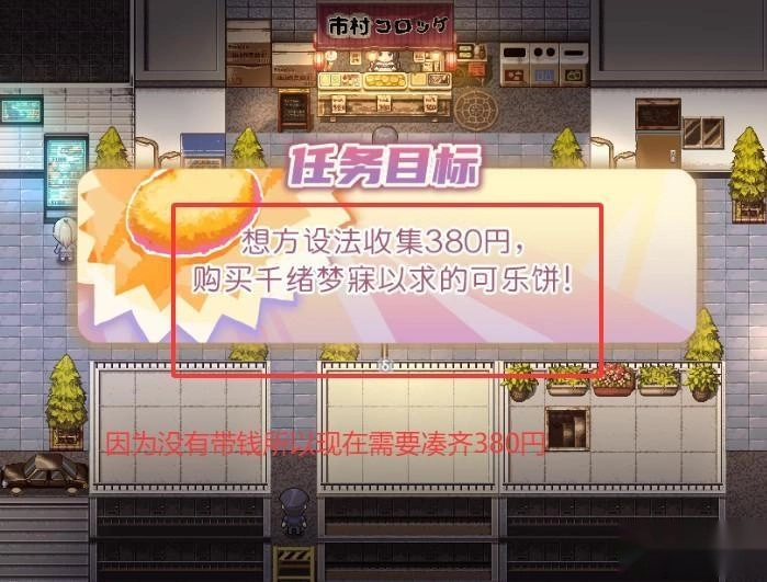 7、根据指引去买东西吃,然后收集380円来购买可乐饼。