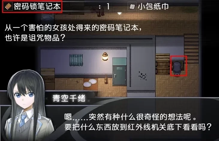 6、调查楼梯旁的药箱,用红外线查看密码锁笔记本