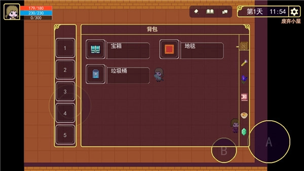 1. 把房间里的东西捡完,就可以出门闯荡啦。手别闲着,看到啥都砍一砍。要留意【小圈按钮】是用来采集的,大圈则是攻击……再次提醒,注意看左上角头像下方有个采集进度条,除了石头之外,其他材料的采集速度都特别慢。而且斧子的颜色对采集没有影响。