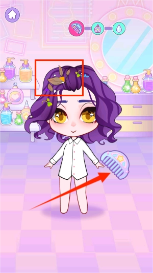 用梳子在发丝间梳理滑动,把那些散落的枯叶碎渣都清理干净。