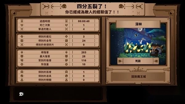 敌人攻击欲望强烈,BOSS战机制复杂(如奇美拉的双形态切换、初代勇者的全屏剑气),死亡惩罚严厉(重置关卡但保留骨粉用于永久强化)。设置"新手模式"降低伤害,但核心玩家追求无伤通关与速通纪录。