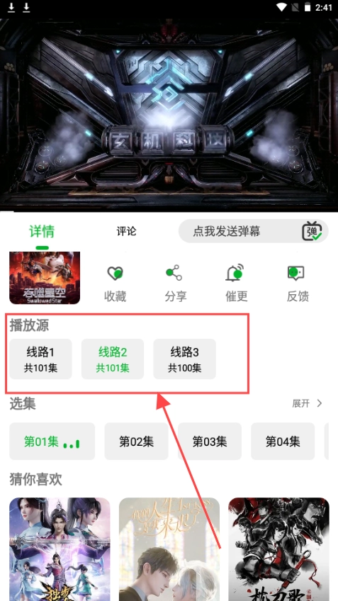 2、以“吞噬星空”为例,在播放界面可以看到多条播放线路供选择。