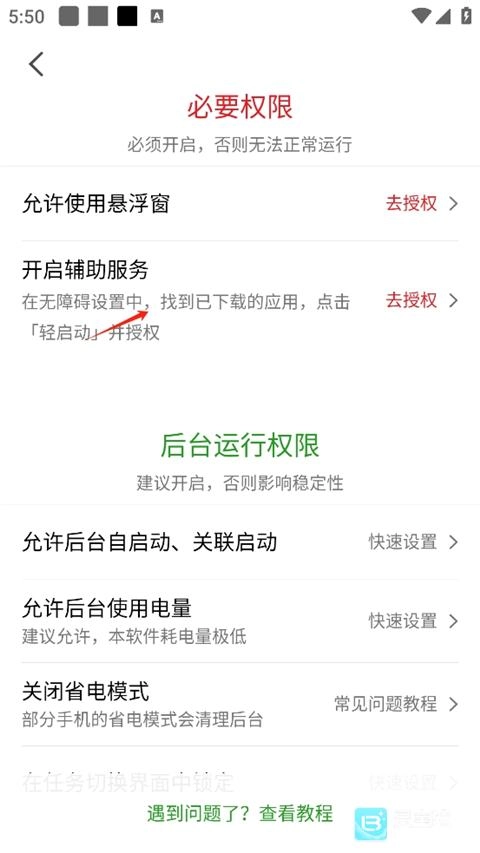 进入软件后打开服务,授予必要权限并开启辅助服务,点击轻启动后打开。