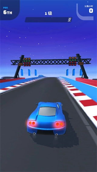2、游戏操作十分简便,先长按屏幕让赛车提升速度,在此过程中我们要留意路边的障碍物。