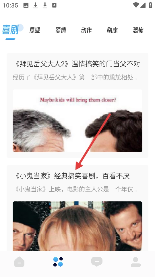 3、在分类页面选择【喜剧】分类,找到《小鬼当家》的相关解读条目并点击。