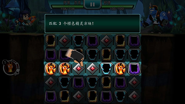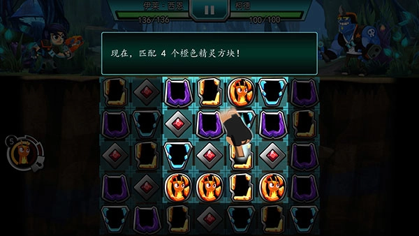 现在,匹配4个橙色精灵方块!将会有惊喜哟
