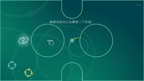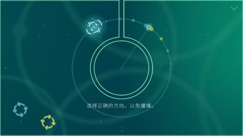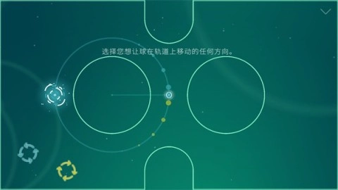 游戏开始时,先设置一条轨道,点击任意位置即可确定圆的中心,左下角可选择小球的运动方向。