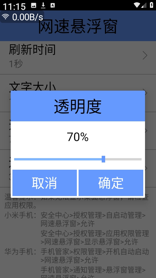 安装后打开软件,即可在屏幕上看到悬浮窗显示网速。