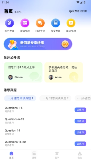 整合一站式课程与题库,全面提升听说读写能力。