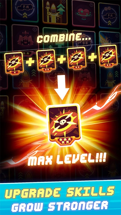 技能策略组合:在成功击败敌人之后,可随机挑选技能来强化角色,比如子弹分裂、范围扩大等,从而打造出独属于自己的流派。
