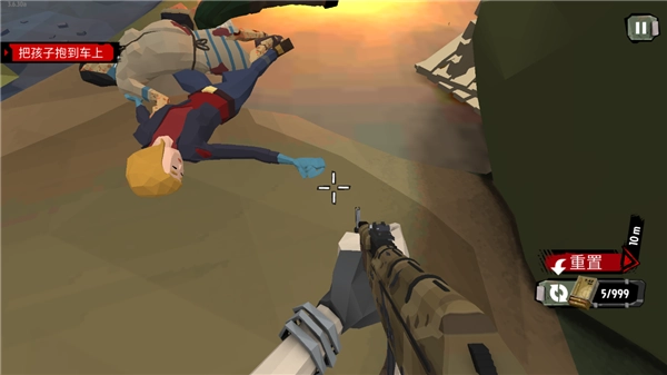 8、此时出现一个新任务,即把孩子抱到车上。每当完成一个任务,就会更新下一个任务,你要保护好这个婴儿。进入游戏后,我们先熟悉操作,左边用于控制方向,右边负责控制瞄准,还有攻击和换弹键。每次完成一个任务都会更新后续任务,务必保护好这位婴儿。