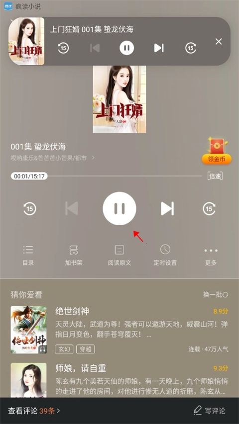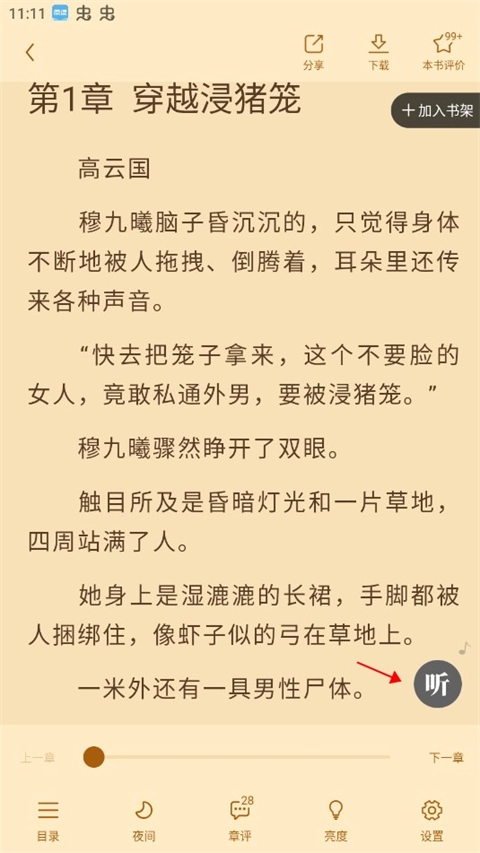 4、在看小说的时候也可以点击听图标来进行听书。