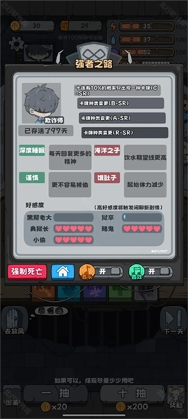 进入游戏后,玩家得时刻留意自身的身体状态,一旦某个属性数值偏低,就得赶紧用卡牌来恢复。