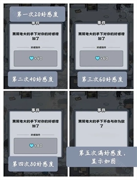 当小偷好感度达到四星半时,会触发与好感度80的小弟之间的煤炭交易;而小偷好感度满值时,则会触发与好感度100的小弟之间的煤炭交易。