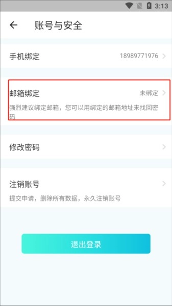 3.点击【邮箱绑定】