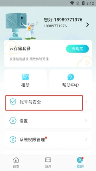 2.选择并点击【账号与安全】