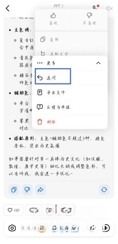 若需对生成的PPT提出修改建议,长按对话框,点击【更多】并选择【追问】。