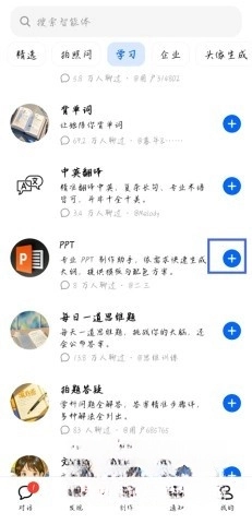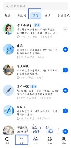 打开豆包AI应用,进入到【发现】页面,接着点击【学习】选项。
