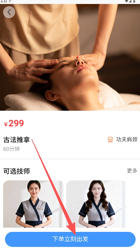 你可以在首页的“推荐技师”板块里浏览,挑选出自己喜欢的技师后,点击进入该技师的服务详情页面。