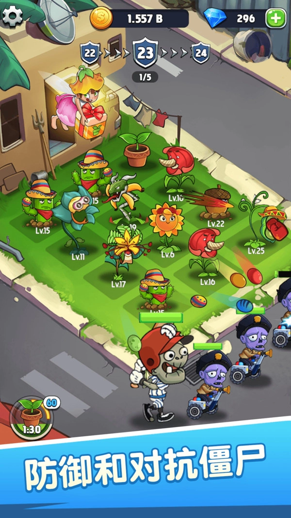 合合合战争最新版是一款集放置、合并与塔防元素于一体的休闲益智游戏,它既保留了经典的植物大战僵尸式设定,又加入了创新的合并升级机制。玩家将化身勇敢的园艺师,在这个被既搞笑又可怕的僵尸入侵的世界里,通过持续合并农作物与花卉,组建起一支强大的植物战队,来抵挡一波接一波袭来的怪物。