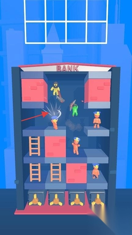 2. 踏入银行所在楼层,操纵角色于多层架构间穿梭,冲破阻碍,躲避并击败敌人,拾取道具,推动冒险进程。