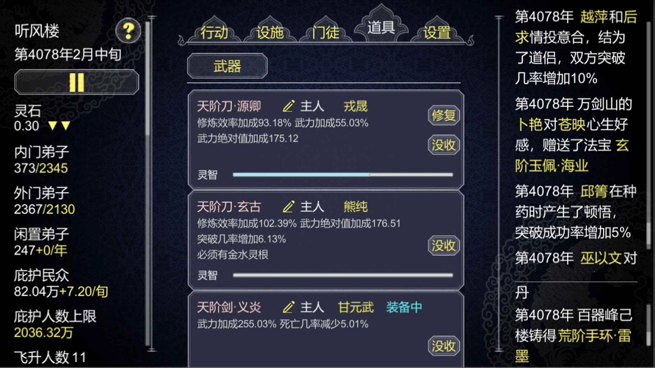 同时你还要吩咐他们打造更多的装备,所有弟子的饮食起居也都要妥善安排。