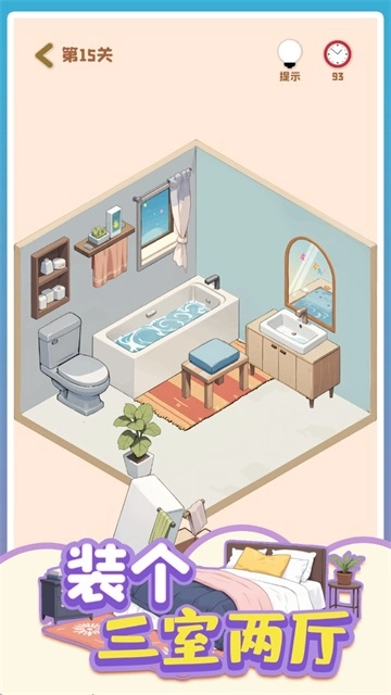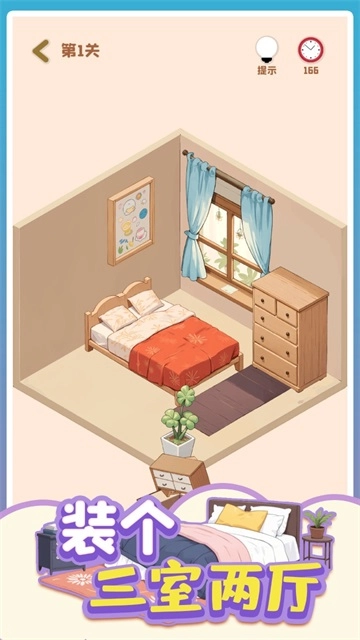 《装个三室两厅》是一款趣味十足的休闲模拟游戏。在游戏里,玩家将化身为装修工人,在限定时间内完成房间装修任务。从锅碗瓢盆这类小物件,到床、柜子、冰箱等大型家具,所有室内物品都由玩家自主挑选,大家能完全依照自己的想法来打造空间。游戏从装修小房间开始,逐步解锁更大的房间,每个空间都有着独特的魅力。