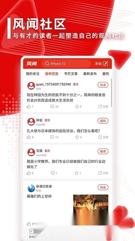 设有风闻社区,用户可与观点相近的伙伴交流互动;