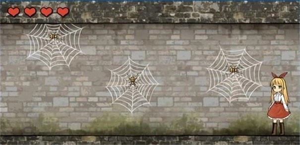 1、首先玩家操控的安娜会遇到一群小蜘蛛,需要被这些小蜘蛛咬到最后一滴血耗尽为止。