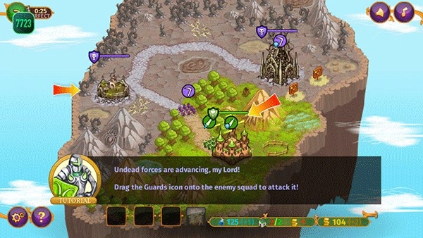 2. 点击游戏底部的各类图标即可使用不同技能。游戏内包含多种类型的部队与各异的技能,玩家需要动脑筋思考如何将它们巧妙结合。