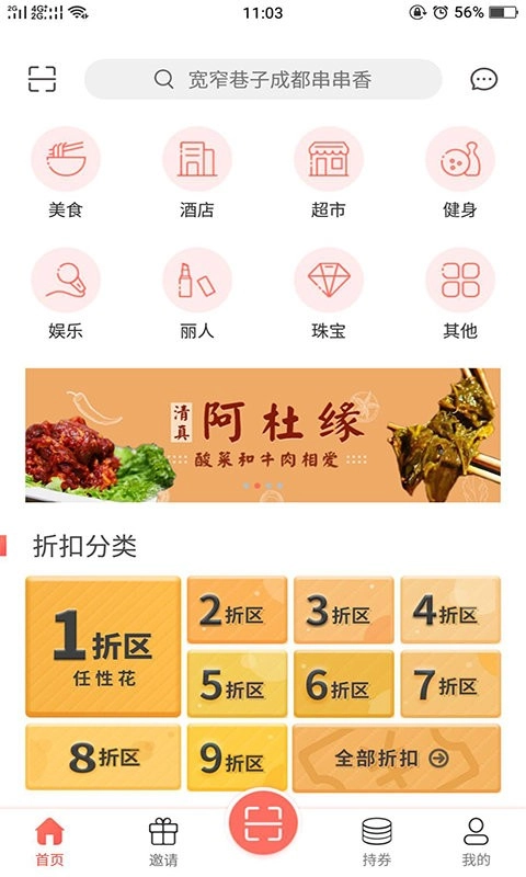 ◇可以依据优惠券折扣力度的差异筛选商家,若进入一折专区,就能在这里享受到一折的优惠福利。