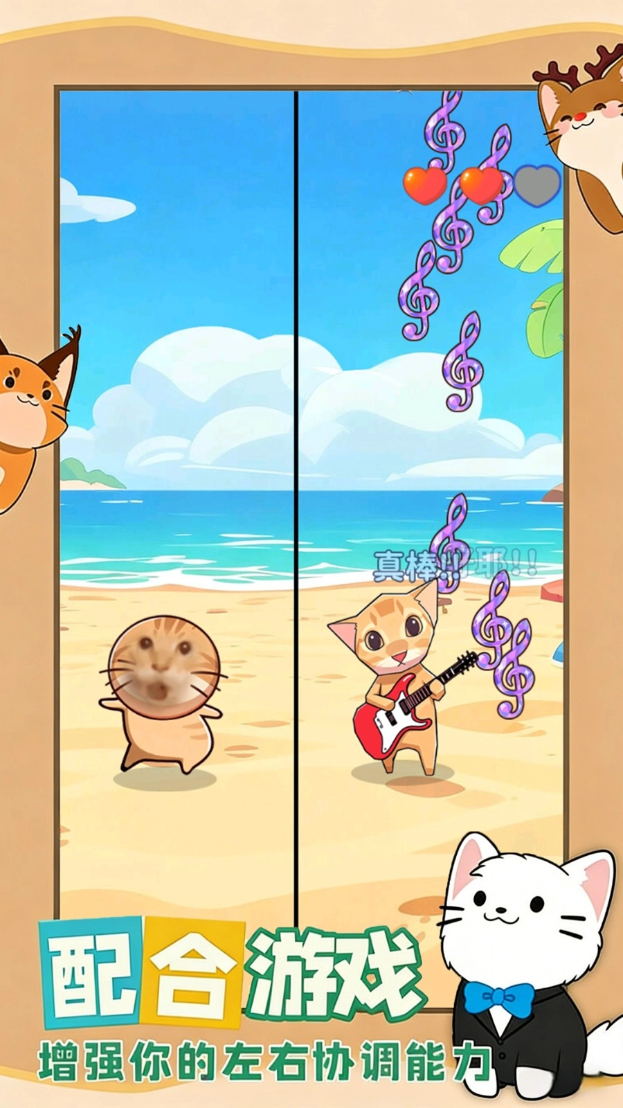 把全网流行的猫咪元素融入视觉与音效设计中,角色的动作和场景的构思都自带热门梗的属性,使得节奏打击的过程洋溢着搞笑的氛围。