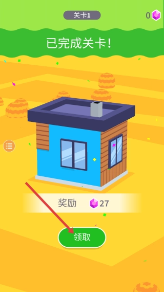 当房子的涂色完成后,游戏会显示关卡已完成,这时点击领取按钮就能获取游戏奖励。