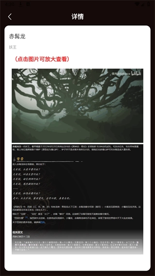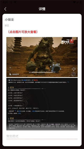 软件里收录了不少《黑神话:悟空》中的妖精图鉴,像虎先锋、小俪龙、波里个浪、晦月魔君这类角色,用户都能进行查看。