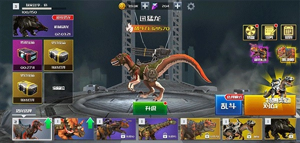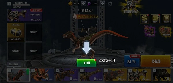 另外,玩家也能在首页的恐龙选择界面里自由挑选想要出战的恐龙,还可以对心仪的恐龙进行升级,升级后的恐龙战斗力会更强大哦。