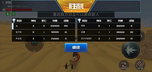 待准心瞄准敌人后,点击射击按钮攻击地方恐龙