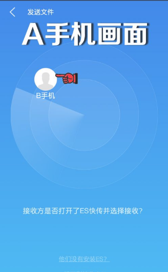 此时在A手机上,点击搜索到的B手机图标。等待数秒,即进入文件传输界面。