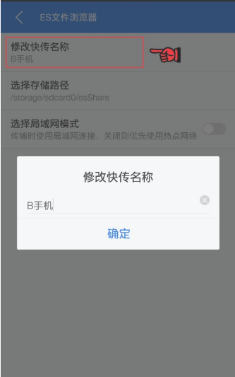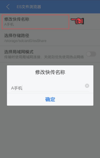 为避免混淆两台手机,建议点击右上角,进入“快传设置”,然后“修改快传名称”。设置后返回。