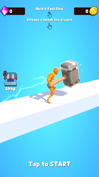 熟悉锤子的破坏机制:学习如何挥动小锤子以及操控角色跳跃,试着破坏第一个障碍物,掌握不同障碍物的破坏方法,以此开启全新的游戏体验。