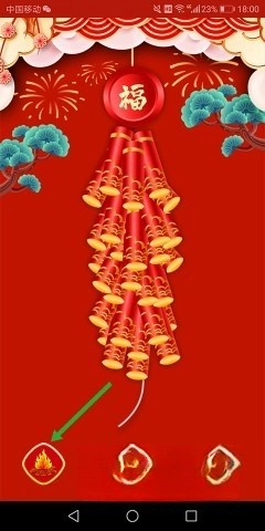 首先启动电子鞭炮,进入主界面后,找到左下方的火堆图标并点击,就能开启电子鞭炮的鸣放。