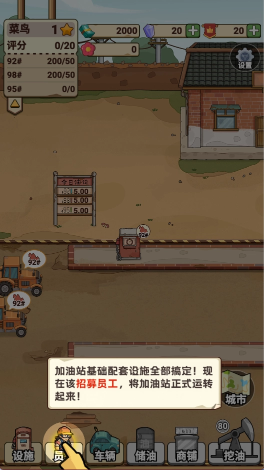 建造加油机,最后招募员工开始正式运营