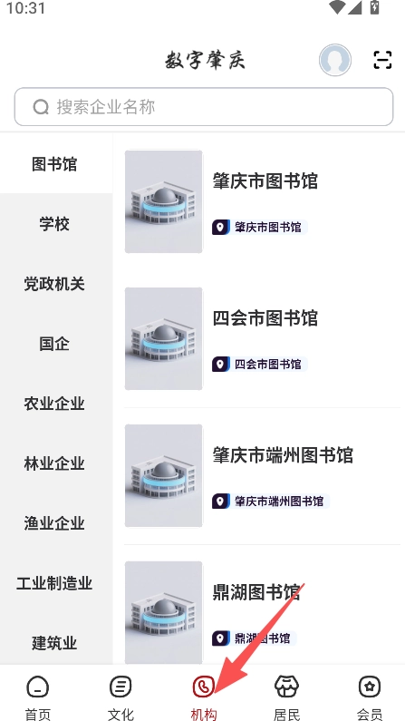 设置图书馆、学校等多个分类板块,覆盖肇庆本地的各类机构与企业,以适配不同的信息查询需求。