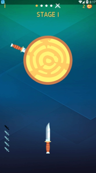 进入游戏后,面对初始关卡的目标,调整好角度与力度,轻轻掷出第一把飞刀,试着精准命中目标,开启这段挑战之旅。