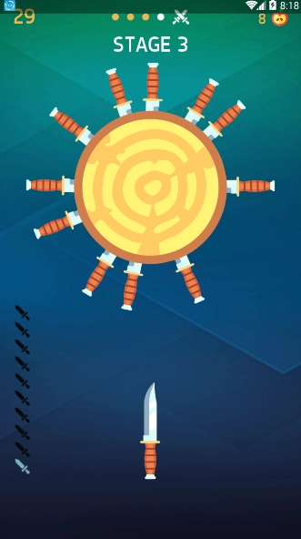飞刀解锁与养成系统:完成关卡挑战后,即可解锁风格各异的飞刀。每款飞刀的操作手感存在细微差别,玩家可尝试多元化的投掷体验,从而更好地应对后续更高难度的关卡挑战。