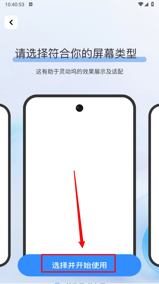 如图,挑选适配你设备的屏幕类型,再点击页面底部的“选择并开始使用”按钮。
