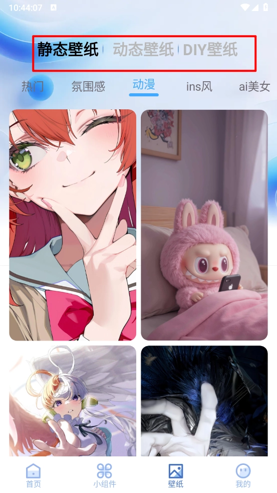 最后在壁纸页面可以选择静态壁纸、动态壁纸以及DIY壁纸。