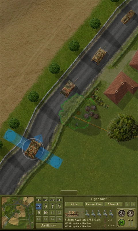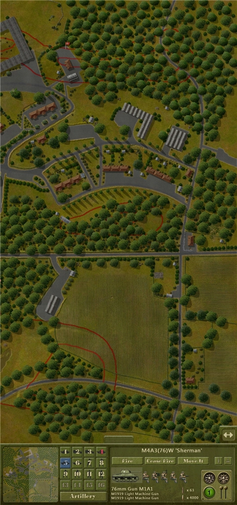 1、这是地图的左半部分,此地路线笔直且视野开阔,敌方必然会架设反坦克炮,是我们的主要进攻方向。