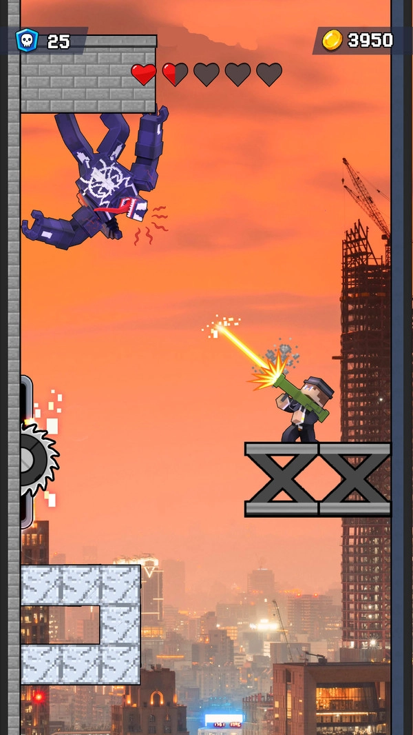 画面右上方清晰显示金币数量,击败敌人和破坏障碍可获得奖励帮助玩家积累资源;角色生命值用心形图标展现,血量减少时玩家需小心应对避免更多伤害才能继续挑战;左上角的骷髅图标记录击败数量,数字增加让玩家直观感受战斗成果。